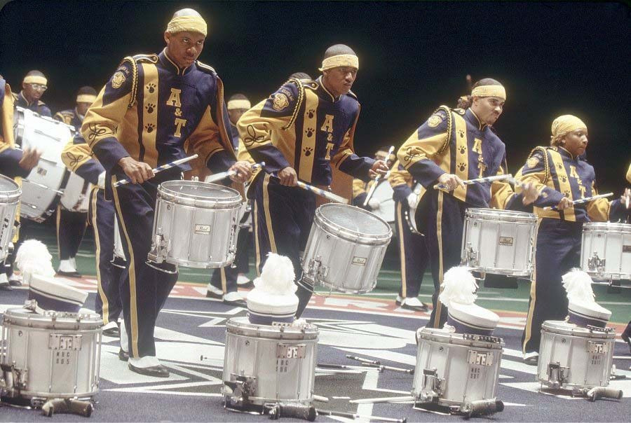 ▷ 밴드 유니폼: 금색과 검정으로 A&T의 자부심과 에너지 표현